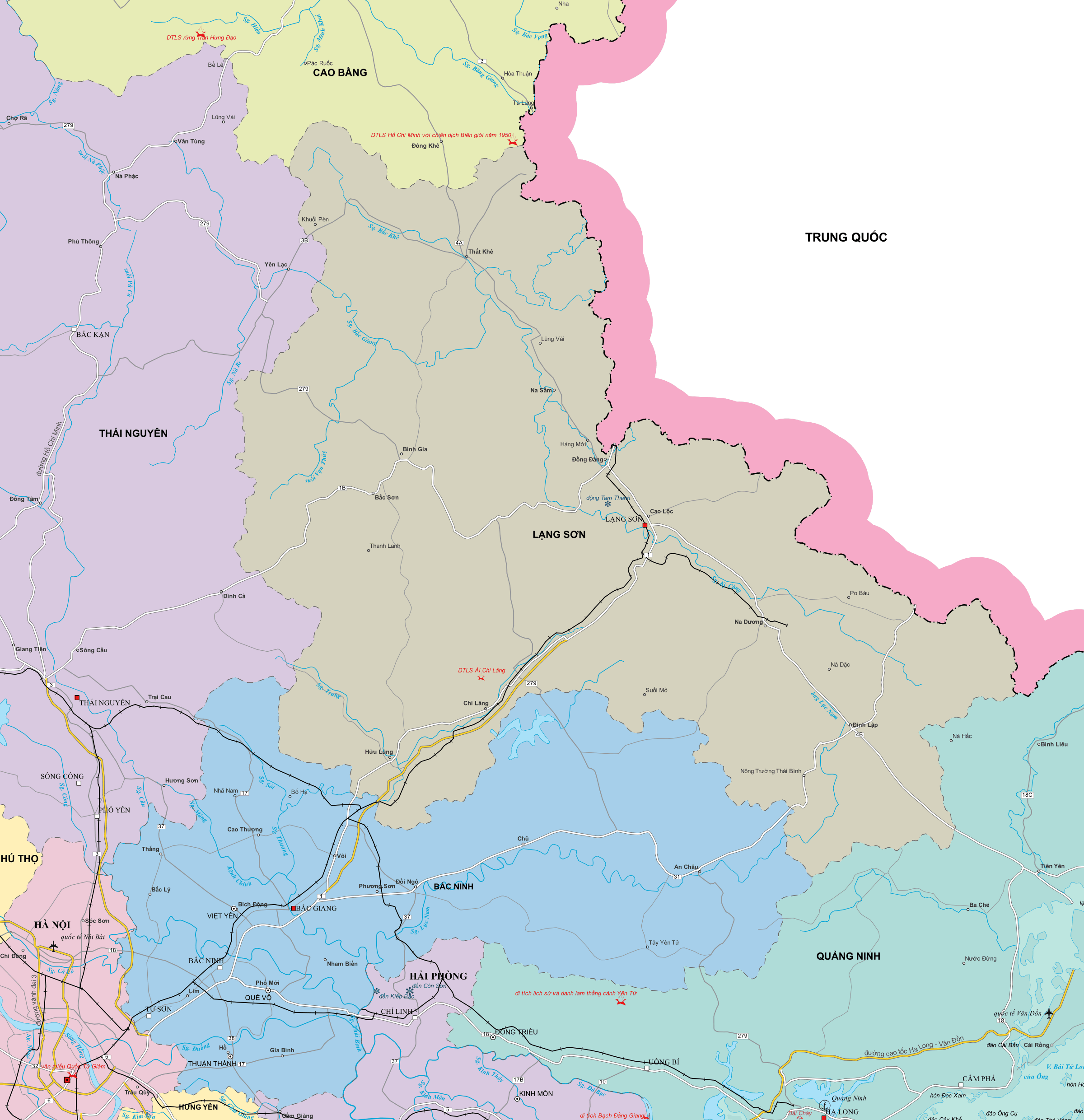 Bản đồ Tỉnh Lạng Sơn - giữ nguyên ranh giới cũ