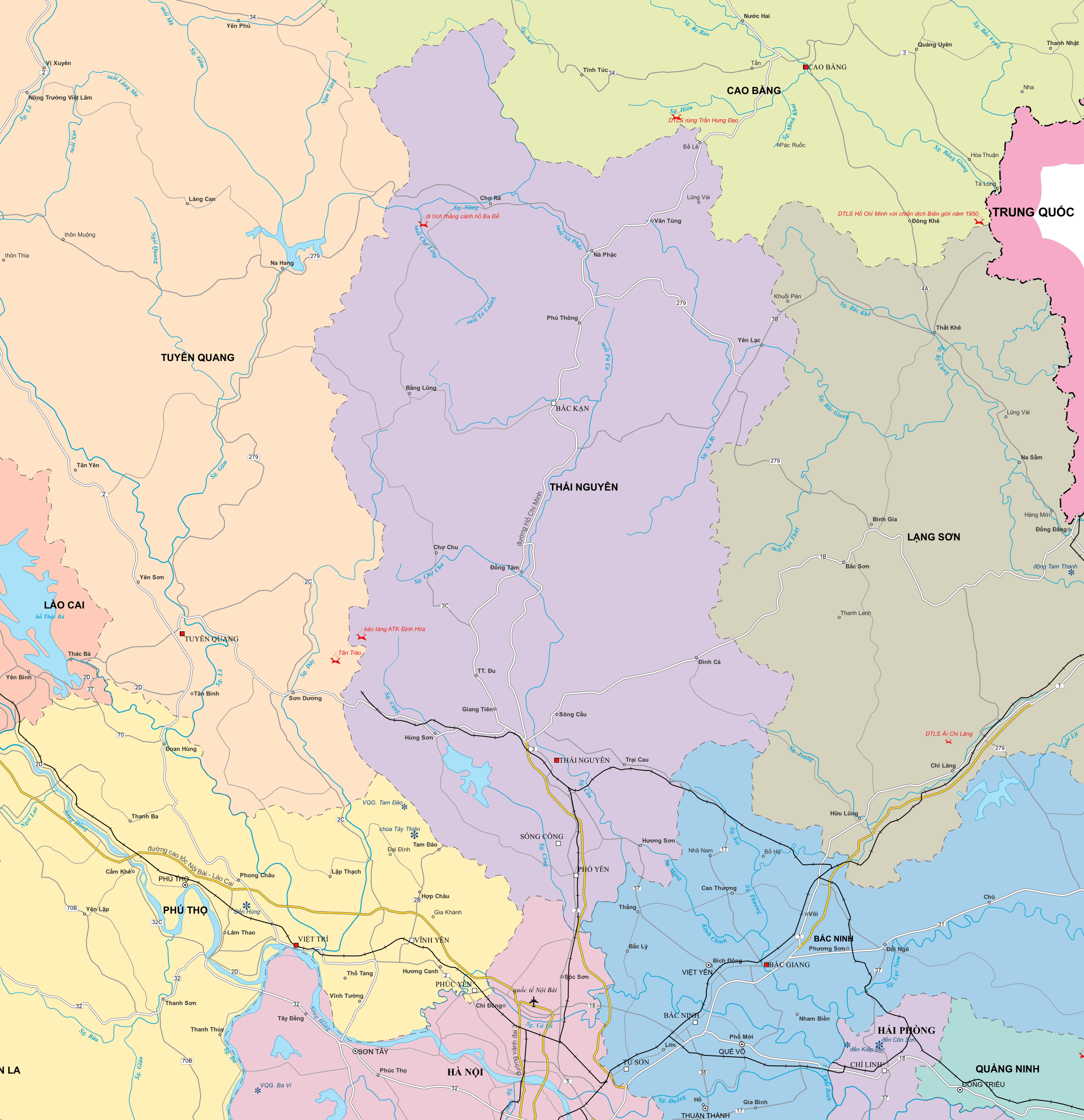 Bản đồ Tỉnh Thái Nguyên mới được Sáp nhập từ: Thái Nguyên, Bắc Kạn cũ